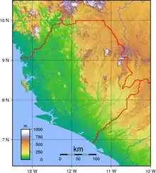 | Punto más alto | Monte Bintumani 1.948 m | |