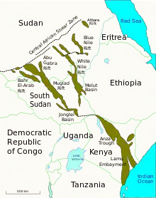 En cuanto a la geología, Sudán del Sur está atravesado por una rama del Rift de África Oriental que incluye las cuencas de Muglad y Melut, que poseen grandes reservas petrolíferas en la frontera con Sudán y han provocado graves conflictos. Los campos petrolíferos se encuentran en el centro y este del país, una inmensa zona aluvial formada por sedimentos recientes y del Terciario y el cuaternario, con arcillas y gravas no consolidadas. En la cuenca de Melut, en la frontera con Etiopía, se encuentran los campos petrolífero de Palogue, explotado por la Corporación Nacional de Petróleo de China, y Adar, explotado por Chevron. En la cuenca de Muglad, zona donde se unen los ríos Jebel y Ghazal, destacan los pozos petrolíferos de Unity (Chevron), Fula (Chevron) y Block 5A (Petronas). En cualquier caso, los conflictos hacen que la producción sea irregular de año en años, así como los consorcios que explotan los yacimientos.[5]