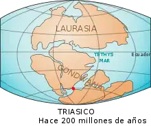 Hace 200 millones de años, los cambios en Gondwana empezaban a marcar su fin: las fuerzas tectónicas la desgarraron y láminas de basalto líquido fueron forzadas a rellenar las grietas que cortaban las capas sedimentarias. Esas coladas solidificadas pueden ser vistas hoy en día en forma de diques que cortan los estratos sedimentarios más antiguos, los cuales se encuentran principalmente en la parte sur de la Isla Soledad y en Sudáfrica.