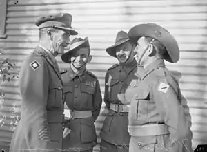 La 25.º Brigada de Infantería avanzó bajo el Valle de Markham y entraron a Lae el 16 de septiembre.[40] La división entonces avanzó arriba del Valle de Markham y abajo el Valle de Ramu. Una serie de operaciones siguió. Primero, comandos del 2 y 6.º Compañía Independiente capturaron Kaiapit en la Batalla de Kaiapit el 19 de septiembre. Vasey voló allí el 21 de septiembre en una Piper Cub, seguido por su 21.º Brigada de Infantería, bajo el comando del Brigadier Ivan Dougherty.[41] La 21.º Brigada de Infantería avanzó a Gusap y después a Dumpu, donde Vasey establecido su sede el 10 de octubre. Finalmente, avanzó a la cordillera Finisterre, donde se detuvo por problemas de logística.[42] En el campaña de la Cordillera Finisterre, la 7.º División capturó a Shaggy Ridge y avanzaron a través de las montañas hacia Madang.[43]