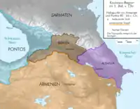 Mientras que la Georgia occidental con el nombre de Lazicum fue muy latinizada, especialmente en los tiempos de Trajano,[2] la parte oriental solamente estuvo bajo protección romana, siendo prácticamente independiente hasta la conquista árabe en el siglo VII d. C.
