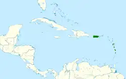 Se la encuentra en Antigua y Barbuda, Dominica, Guadalupe, Martinica, Montserrat, Antillas Neerlandesas, Puerto Rico, Santa Lucia, islas Vírgenes Británicas, y las U.S. Virgin Islands. Sus hábitats naturales son los bosques tropicales.