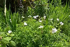 Se trata de una herbácea perennifolia que crece hasta los 50 cm de altura, con hojas profundamente cortadas con 7 lóbulos y flores blancas o moradas, con vetas de color rosa y que se producen en verano. Se propaga con rizomas subterráneos y se utiliza para la cubierta vegetal o la parte delantera de una valla.[3]
