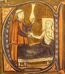 ![]() Imagen del persa Al-Razi en la traducción de la enciclopedia de medicina de Gerardo de Cremona | ||