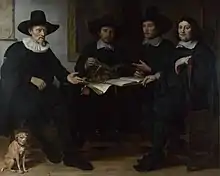 Los retratos, individuales y de grupo, corresponden al entorno familiar, como los tres retratos de su padre y el de su madrastra Cornelia Dedel,[8] o se vinculan en su encargo a sus relaciones familiares, como el retrato de cuatro oficiales del gremio de toneleros y vinateros de Ámsterdam, al que pertenecía su hermano Jan, comerciante de vino y uno de los retratados (Londres, National Gallery).