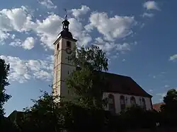 Se encuentra ubicado al oeste del estado, en la región de Franconia Media, a poca distancia al sur de la orilla del río Meno —un afluente derecho del Rin— y al este de la frontera con el estado de Baden-Wurtemberg.