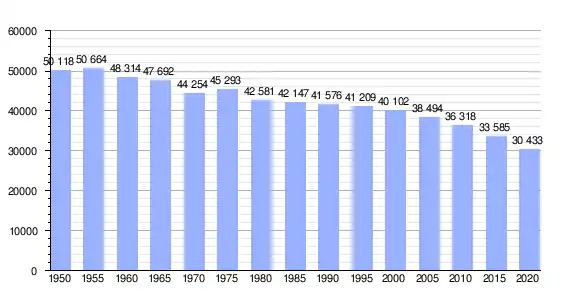 | Gráfica de evolución demográfica de Gero entre 1950 y 2020 |
