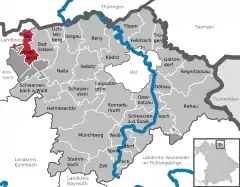 Se encuentra ubicado al norte del estado, en la región de Alta Franconia, a poca distancia de la frontera con los estado de Turingia y Sajonia.