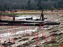 - ciertas áreas agrícolas (por ejemplo, como parte de la conversión de una granja a agricultura ecológica o para la restauración de prados, bocages o zonas tampón —como franjas de pasto—,[7] más ricas en biodiversidad o funcionalmente más eficientes para la protección contra inundaciones o para la restauración de un suelo con más humus y de mayor estabilidad frente a la erosión, la salinización, la eutrofización o la degradación del suelo).