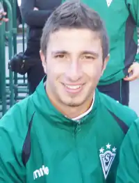 ![]() Giakumis durante la toma de la foto oficial de Santiago Wanderers en Valparaíso. | ||
