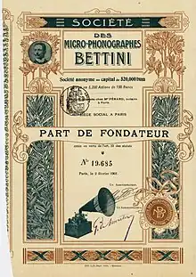 En 1898 se estableció la Société des Micro-Phonographes Bettini francesa con un capital de 850 000 francos en París, 23, boulevard des Capucines. Antes de la Primera Guerra Mundial, Bettini llevó su colección de grabaciones maestras a Francia. Durante la Segunda Guerra Mundial, la mayoría de ellos se perdieron cuando el almacén en el que estaban almacenados fue destruido en un ataque aéreo. Debido a la combinación de esa pérdida, la muy pequeña cantidad de copias producidas anteriormente y la naturaleza frágil y químicamente inestable del medio de cera, los cilindros Bettini son ahora extremadamente raros; se sabe que existen unas pocas docenas. Solo las grabaciones que hizo de un anciano Papa León XIII justo antes de su muerte en 1903 (no en 1884, como se informa erróneamente en algunas noticias de 2014 sobre grabaciones papales) se distribuyeron más ampliamente y, en consecuencia, han sobrevivido en múltiples copias tanto en el cilindro como en formatos de disco.
