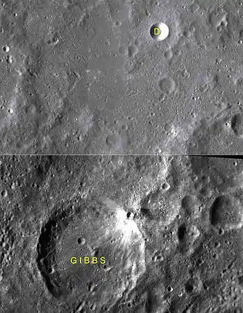 Por convención estos elementos son identificados en los mapas lunares poniendo la letra en el lado del punto medio del cráter que está más cerca de Gibbs.