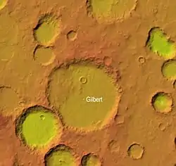 Gilbert es un gran cráter marciano localizado en el sur del planeta, en el área denominada Promethei Terra. Es uno de los varios grandes cráteres fuertemente picados de marcas que comparten la misma altiplanicie. Desde 1973 lleva el nombre del geólogo estadounidense Grove K. Gilbert.[1]