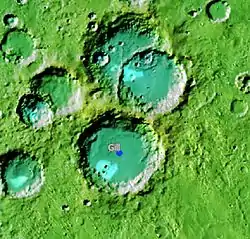 ![]() Cráter marciano Gill (colores virtuales) | ||