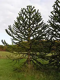 - ORDEN G. Araucariales Gorozh., Lekts. Morf. Sist. Archegon.: 72 (1904). Tipo: Araucariaceae. Sinónimos: Podocarpales Pulle ex Reveal, Novon 2: 239 (1992). Tipo: Podocarpaceae. Saxegothaeales Doweld & Reveal, Phytologia 84: 365 (1999). Tipo: Saxegothaeaceae. Falcatifoliales Melikian & A.V.Bobrov, Bot. Zhurn. (Moscow & Leningrad) 85(7): 61 (2000). Tipo: Falcatifoliaceae. Parasitaxales Melikian & A.V.Bobrov, Bot. Zhurn. (Moscow & Leningrad) 85(7): 61 (2000). Tipo: Parasitaxaceae. Microstrobales Melikian & A.V.Bobrov ex Doweld & Reveal, Novon 11: 396 (2001). Tipo: Microstrobaceae.