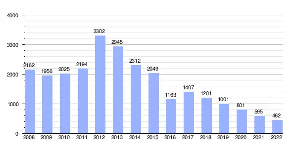 | Gráfica de evolución de la deuda viva del Ayuntamiento de Gines entre 2008 y 2022 |