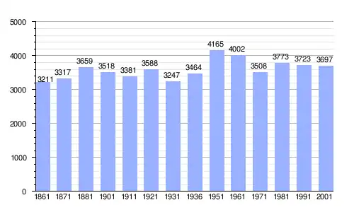 | Gráfica de evolución demográfica de Gioia Sannitica entre 1861 y 2001 |