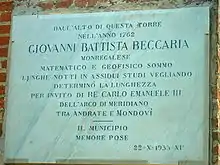 ![]() placa celebratoria a Giovanni Battista Beccaria, Torre en Mondovi, Italia | ||
