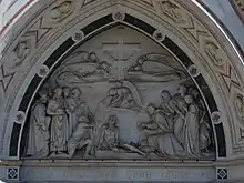 - 1861 - Il trionfo della Croce, relieve en el tímpano del portal central de la basílica de la Santa Cruz en Florencia.[10] El bajorrelieve del portal izquierdo (Ritrovamento della Croce) fue realizado por Tito Sarrocchi y el del derecho (Visione di Costantino) por Emilio Zocchi.