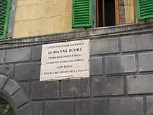La casa donde nació, sita en la esquina de las calles Giovanni Dupré y Vicolo di S. Salvatore, en Siena, tiene en su fachada una placa con la inscripción: