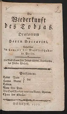 - Il ritorno di Tobia, oratorio, música de Joseph Haydn (1775)