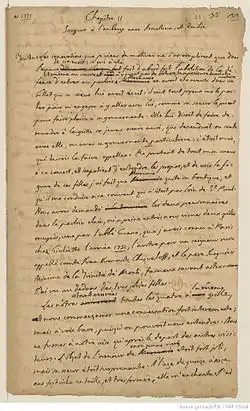 Primera página del capítulo II, vol. X (más tarde publicado como vol. XII) del manuscrito de Giacomo Casanova Histoire de ma vie.