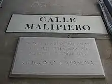 Placa conmemorativa en Venecia.