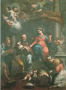 - Tríptico con la Virgen acompañada de San Carlos y Santa Catalina.