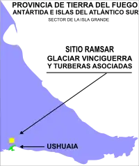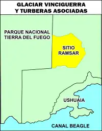 Glaciar Vinciguerra y turberas asociadas es el sitio Ramsar más austral del mundo (al 2011), ubicado en el departamento Ushuaia de la provincia de Tierra del Fuego, Argentina. Fue designado el 16 de septiembre de 2009 con el número 1886 y en Argentina es el sitio n.º 19.[1]