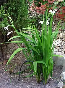 3. Evans, Erv, Acidanthera bicolor, Gladiolus callianthus; Abyssinian, Fragrant gladiolus, Sword lily, NC State University, archivado desde el original el 4 de septiembre de 2007, consultado el 29 de junio de 2007.