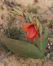 Gladiolus equitans es una especie de gladiolo originario de las colinas rocosas de Namaqualand, Sudáfrica.[1]