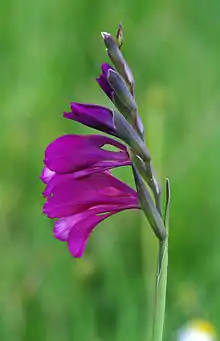 Gladiolus: nombre genérico que se atribuye a Plinio y hace referencia, por un lado, a la forma de las hojas de estas plantas, similares a la espada romana denominada "gladius". Por otro lado, también se refiere al hecho de que en la época de los romanos la flor del gladiolo se entregaba a los gladiadores que triunfaban en la batalla; por eso, la flor es el símbolo de la victoria.[3][4]