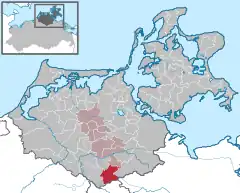 Se encuentra al sur del distrito, junto a la frontera con el distrito de Llanura Lacustre Mecklemburguesa.