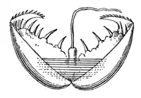 Esta larva tiene unos ganchos que les permiten sujetarse a las branquias de un pez hospedador. Una vez pasado el estadio larvario, se desprenden y caen al fondo, donde acaban por adquirir la forma típica de un bivalvo juvenil. Como el pez hospedador nada libre durante esta etapa, esto ayuda a estos bivalvos a colonizar nuevas áreas a las que no podrían llegar de otra manera.