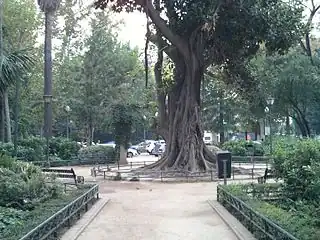 ![]() La glorieta, con el ficus en el centro | ||