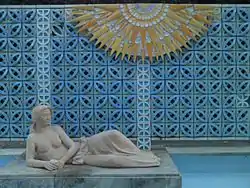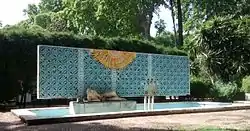 En 1967 se construyó frente al monolito una fuente con una mujer tumbada realizada en un vaciado de piedra artificial,[1] con un mural de cerámica vidriada con forma de celosía de color celeste. La estatua de la mujer y la celosía son obra de Emilio García Ortiz, que contó con la colaboración de José Elías y José Lupiáñez.