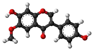 Glycitein es una O-metilada isoflavona que contiene el 5-10% del total de isoflavonas en lps productos alimenticios de soja. Glycitein es fitoestrógeno con una débil actividad estrogénica, comparada con otras isoflavonas de soja.[2]