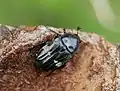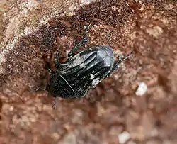 Se distribuye por la región paleártica. Mide aproximadamente 12,3 milímetros de longitud.[2] Es marrón oscuro a negro en la parte del dorso, con algunas manchas blancas en el pronoto.[3] Además posee marcas moteadas que sirven para diferenciarse de otras especies similares.[3]