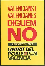 Ante el «viraje» del PSOE, la bandera del rechazo a la OTAN fue recogida por el Partido Comunista de España —ahora dirigido por el asturiano Gerardo Iglesias que había sustituido a Santiago Carrillo, quien acabó abandonando el PCE para fundar la Mesa para la Unidad de los Comunistas— que formó una amplia coalición de organizaciones y de partidos de izquierda —incluidos socialistas que abandonaron el PSOE al estar en desacuerdo con el cambio de posición de su partido—, de la que surgiría Izquierda Unida, coalición que se presentó a las elecciones generales de junio de 1986. Por su parte, la proatlantista Alianza Popular optó paradójicamente por la abstención, dejando solo al gobierno, lo que constituyó, en palabras de David Ruiz, una «penosa estrategia… que desacreditará la carrera política de su fundador, Manuel Fraga, en tanto que aspirante al gobierno del Estado».[34]