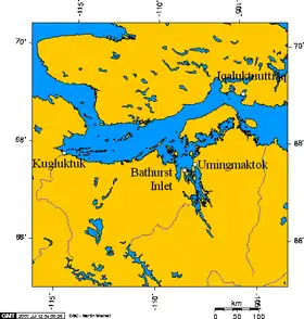 | Ciudades ribereñas | Kugluktuk (1302 hab. en 2006) | |