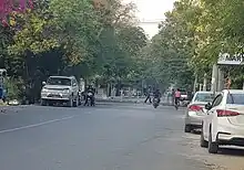 Militares bloqueando una oficina gubernamental de la región de Mandalay.