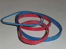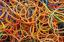 Una goma elástica, también conocida coloquialmente como liga, gomilla o gomita es una banda anular de caucho elástico utilizada comúnmente para mantener varios objetos juntos.