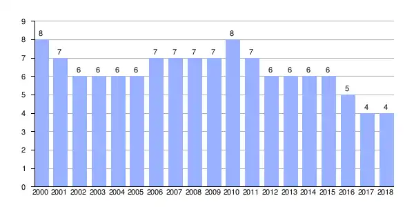 | Gráfica de evolución demográfica de Gomil entre 2000 y 2018 |