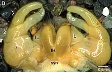 | Polyzoniida | 2 | 9.º y 10.º | Similar a las patas; PP9 transferencia de esperma | |