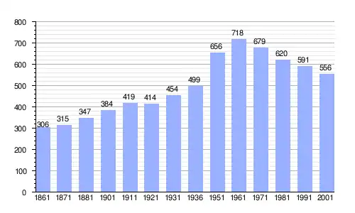| Gráfica de evolución demográfica de Goni entre 1861 y 2001 |