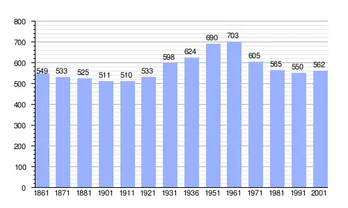 | Gráfica de evolución demográfica de Gonnoscodina entre 1861 y 2001 |