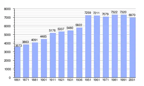 | Gráfica de evolución demográfica de Gonnosfanadiga entre 1861 y 2001 |