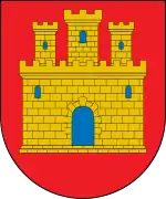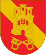 - En campo de gules, un castillo de oro, almenado de tres torres.[cita requerida]