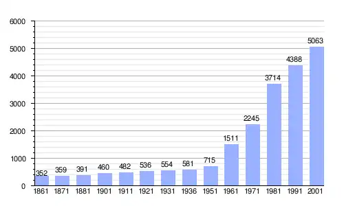 Gráfica de evolución demográfica de Gorle entre 1861 y 2001
