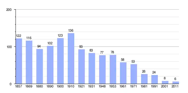| Gráfica de población de Gornje Tihovo 1857-2011 |
